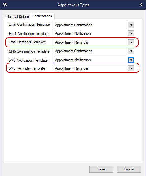Use the Email Reminder Template and SMS Reminder Template fields to customize the message.