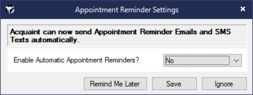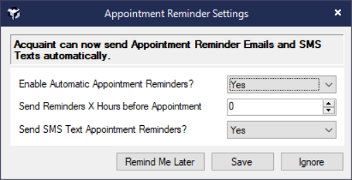 The system allows you to send automated reminders for appointments via Email and SMS Text. These reminders help reduce no-shows and keep contacts informed of upcoming events.