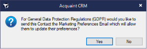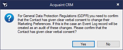 Although Acquaint already has Marketing Preference options per Contact, Version 12 contained new functionality to help you adhere to GDPR: