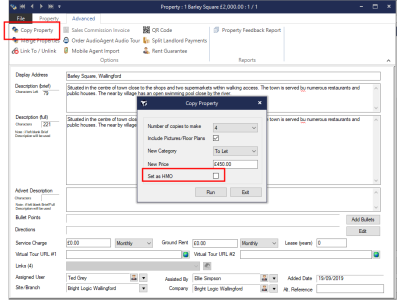 In Number Of Copies to Make enter the required copies for each of the rooms. Complete the remaining details as applicable then select the Set as HMO check box.