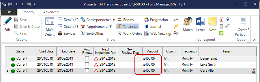 • Produce your Tenancy Agreement against the Primary Tenant. This will pull through each Tenant and amalgamate the rent and deposit amounts