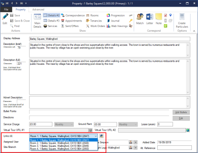 The Property records for the linked rooms will be loaded, scroll through and update the Property Names to "Room 1" "Room 2" "Room 3" etc. Note the "main" property will be set as Status "Instructed" to stop it being advertised.