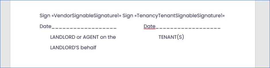 The tags you will want are “Tenancy Tenant Signable Signature X” and “Vendor Signable Signature X” – Vendor is Landlord in this case. Each number corresponds to the order of Linked contacts, starting from the Primary.