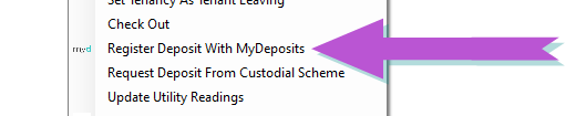 You will also have the opportunity to send it to MyDeposits at any point from the right click menu against the Tenancy