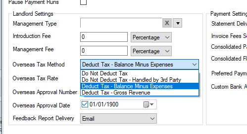 When creating a new landlord record, the default value of this field will be "Do Not Deduct Tax".