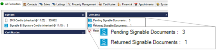 Home Page Reminders will be displayed for Pending Signable Documents.