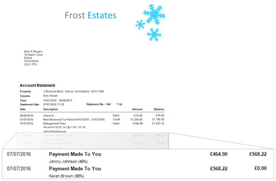 Against a Property click the Advanced tab, Split Landlord Payments