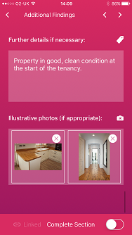 Once sync'd you can access the report and add some information to it, once completed swipe the Complete Report switch.