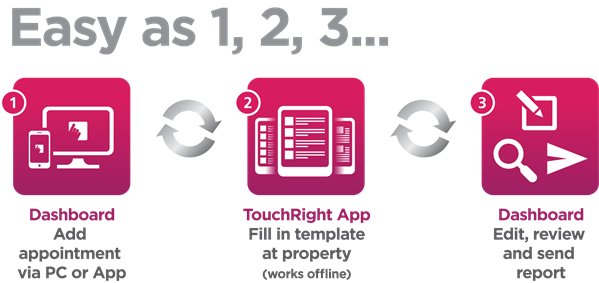 TouchRight software helps letting agents, property managers, inventory clerks and contractors produce property reports with ease. Create a host of bespoke property reports including inventories, mid terms, check ins, check outs, HMO and Legionella. Risk Assessments can be created with a few simple clicks and produce professional, branded reports for your clients.