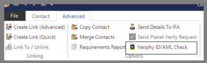 From a Contact click the Advanced tab and select Verify ID/AML Check.