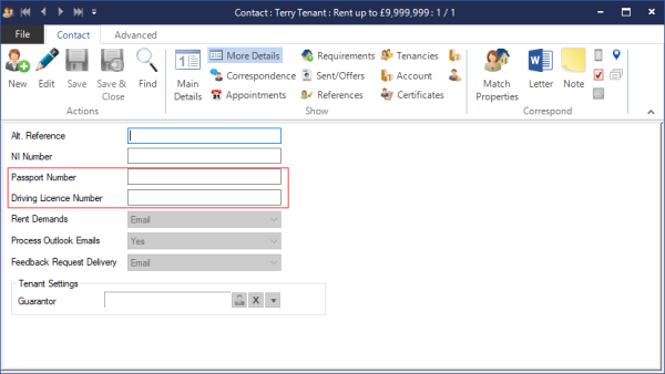 Optionally you can send Passport and/or Driver's Licence numbers to Veriphy for checks. Enter these against a Contact under More Details.